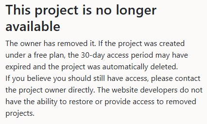 Recently, we have been receiving frequent questions from users asking why links to projects have stopped working and why they are seeing a 404 ‘Page not found’ error instead of the project. Starting today, detailed information will be displayed for deleted projects